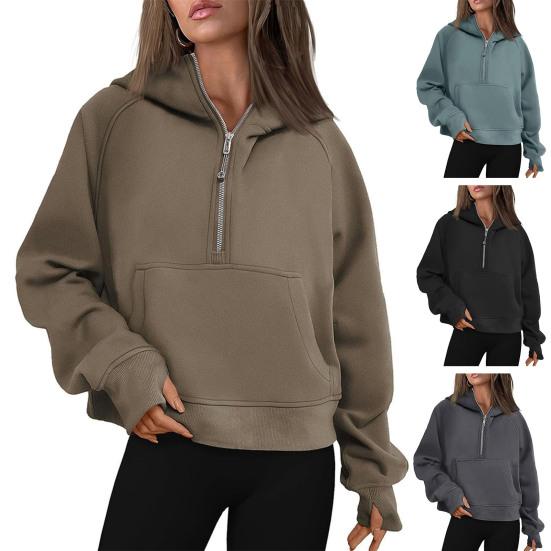 Stay warm and stylish with our women's hoodie, featuring cuffs with thumbhole design, perfect for winter outdoor sports. The stylish collar comes with hooded design to keep your neck warm, while the high-quality zippers add a fashionable touch. Made of soft and breathable fabric, this casual pullover is a must-have for your autumn and winter wardrobe. The thick material provides comfort and warmth, making it ideal for the colder seasons.