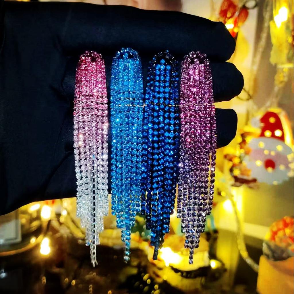 Fashion Temperament Luxury Super Flash Full Diamond Long Fringed Earrings