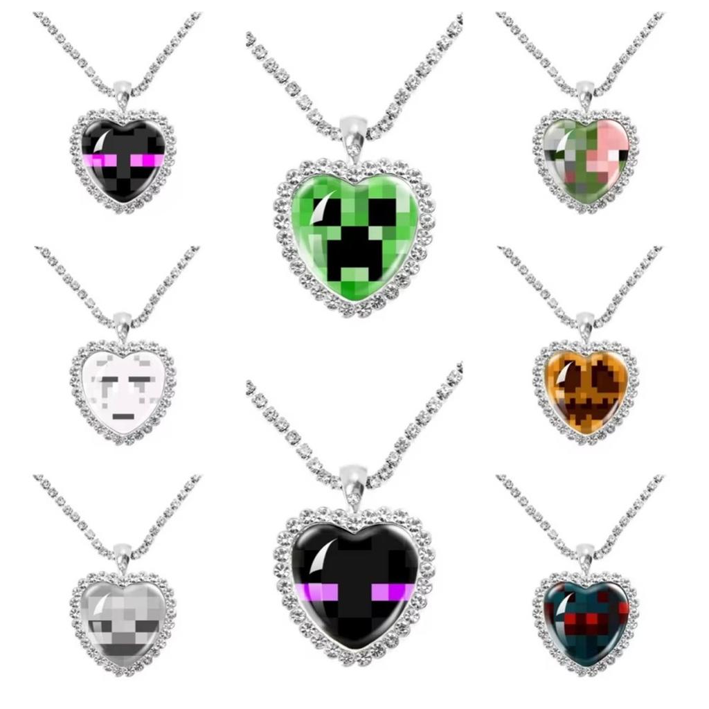 Fun Pixel Block-themed Heart Necklace Accessories, Heart Pendant, Sweater Chain, Rhinestone Necklace