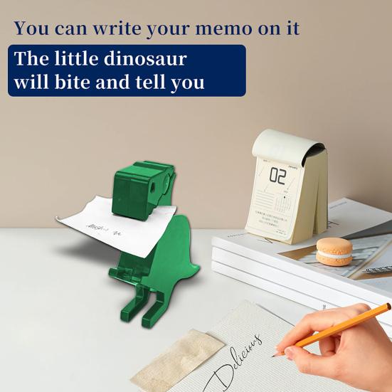 This compact sticker note holder is a unique and charming desk accessory designed to brighten up your kitchen, home, or office space. Crafted with sturdy materials, it securely holds notes, memos, or stickers using its clothespin-like mouth, ensuring important reminders are always visible. Its clever design includes a spring memo clip for pens or pencils and a paper container shaped like a dinosaur's body, combining functionality with playful decor.