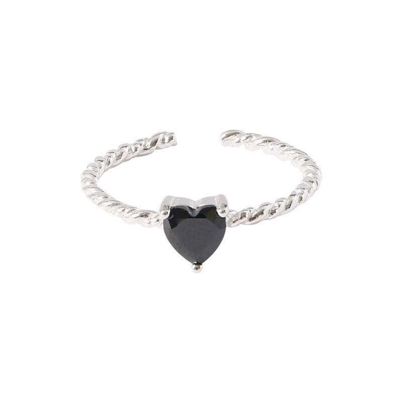 Simple Design Heart Rhinestones Open Rings For Women Silver Color Adjustable Love Couple Twist Ring Gift Jewellery Accessories