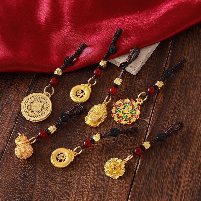 Vintage Gold Plated Brass Car Keychain Hollow Gourd Keychain Bag Charm Lucky Key Ring Jewelry