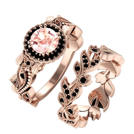 2Pcs/Set Fashion Flower Leaf Rhinestone Women Wedding Ring Jewelry Accessories