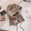 Soft Solid Balaclava Beanie Winter Women Warm Knit Hat Pile Caps Button Ear Protection Tie Pullover Hat Gift