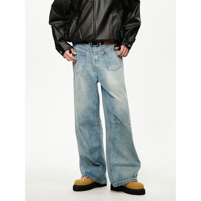 Men's Autumn American Retro Niche Reverse Wash Denim Pants Unisex Loose Casual Wide-Leg Floor-Length Pants