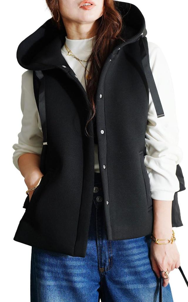 The large hood makes your face look smaller and more stylish. It's a simple vest that looks great just by putting it on.