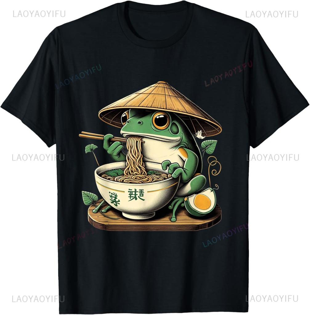 Frog Eating Ramen Kawaii Japanese Noodles Anime Lovers T-Shirt Casual Fashion Loose Harajuku Style Man Tshirt Summer Women Tees