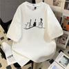 T-shirt À Manches Courtes Imprimé Chat Guitare 100 % Coton Design Américain Pour Hommes Et Femmes Été Ample Et Polyvalent