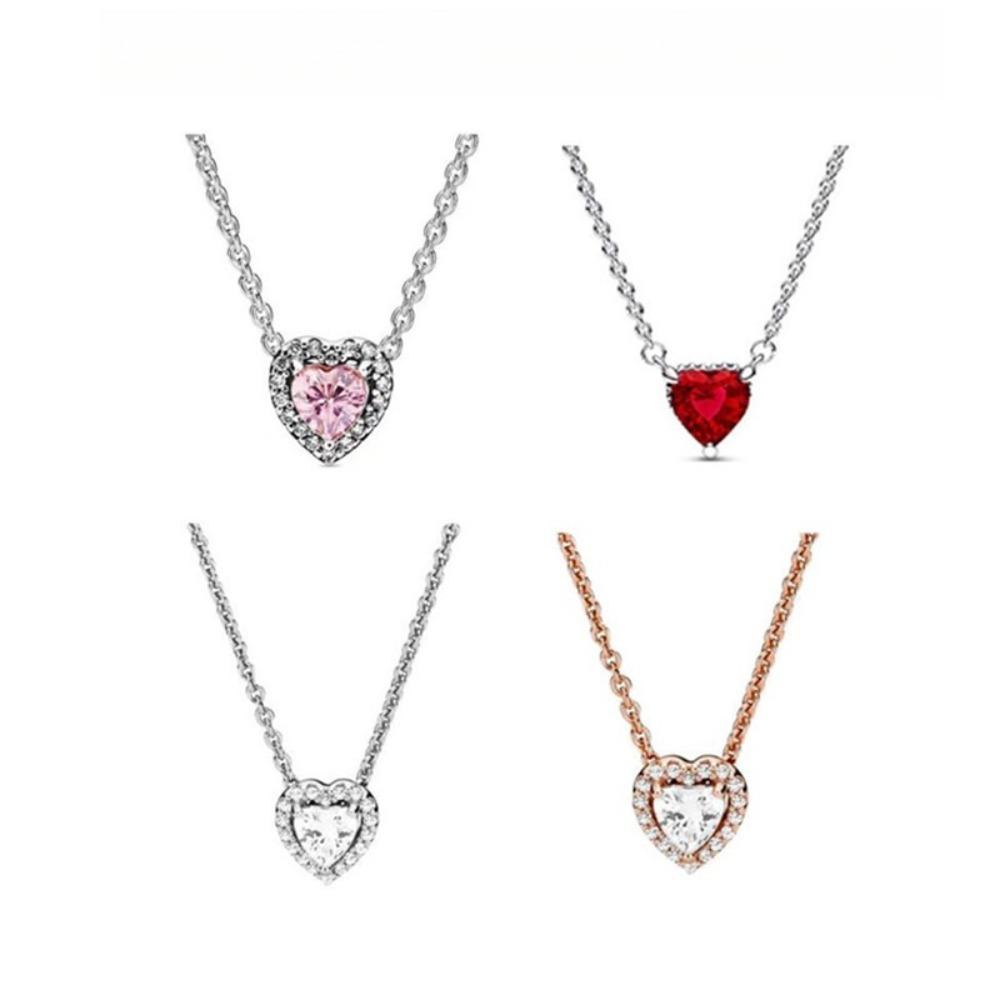 Heart Necklace Elegant Silver Plated White Copper Pendant Women Collarbone Chain Romantic Gift for Her