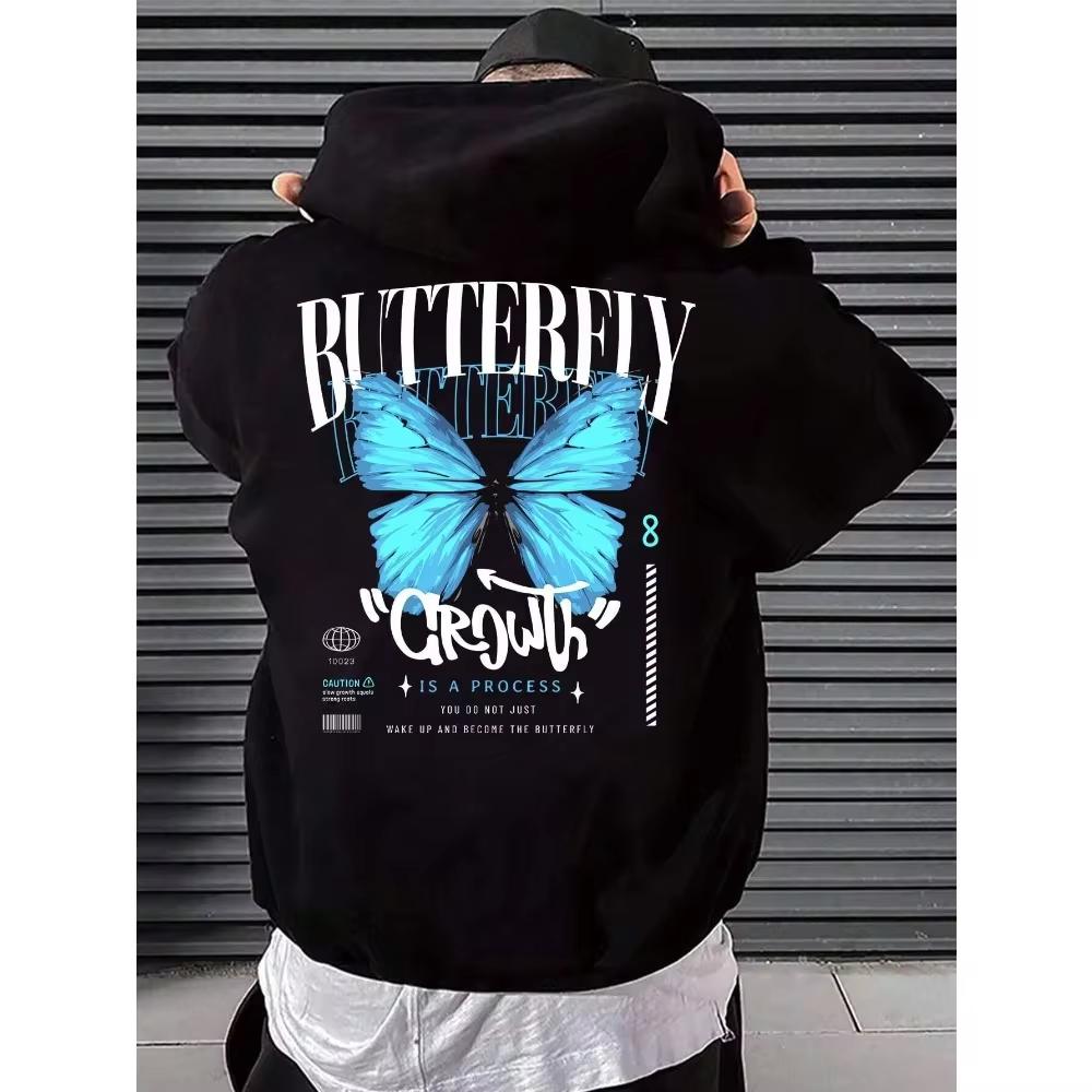 High Quality Liberal Sports Blue Butterfly Brand Brand Printed Hoodie Men's Hoodie Men's Goth High Street Hiphop Free Hoodie