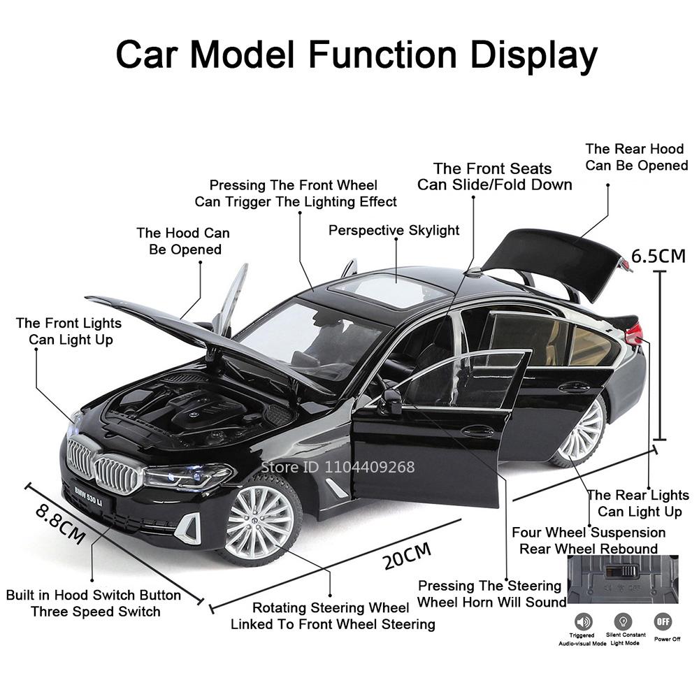 1:24 Scale 530LI 760LI Car Model Toy Alloy Body Rubber Tires Sports Cars Wheel Steering Shock Absorption Models Decorative Gifts