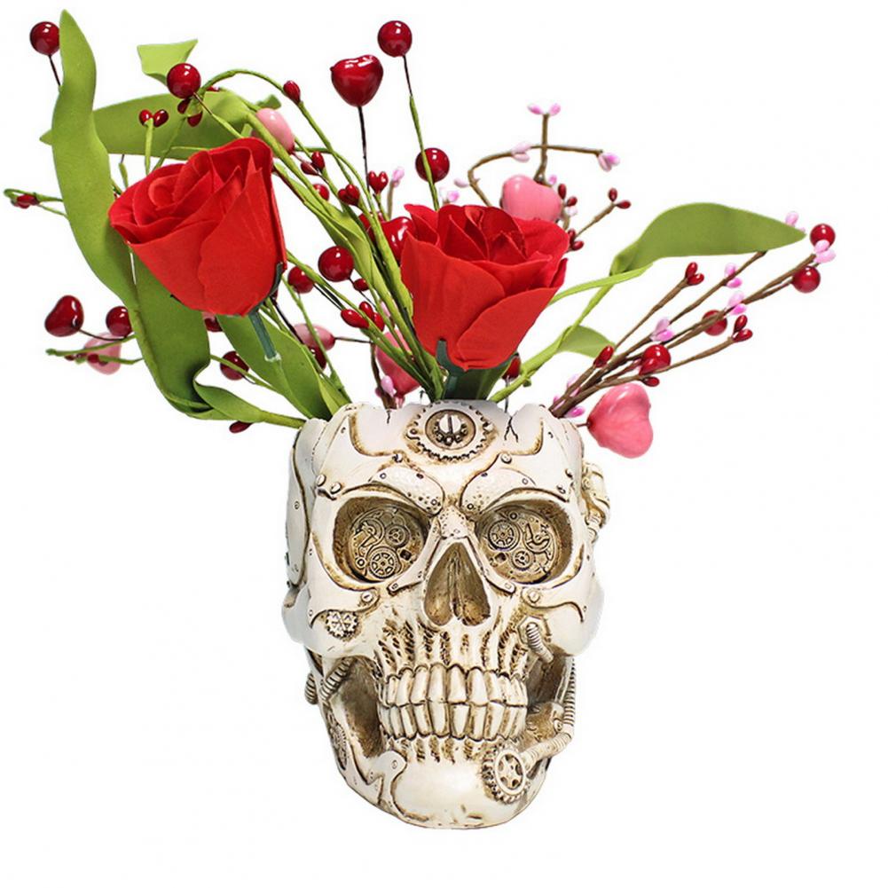 Trendy Skull Home Decor Skull Flower Pot Candy Bowl Set for Home Office Halloween Decor Hand-painted Resin Planter for Indoor