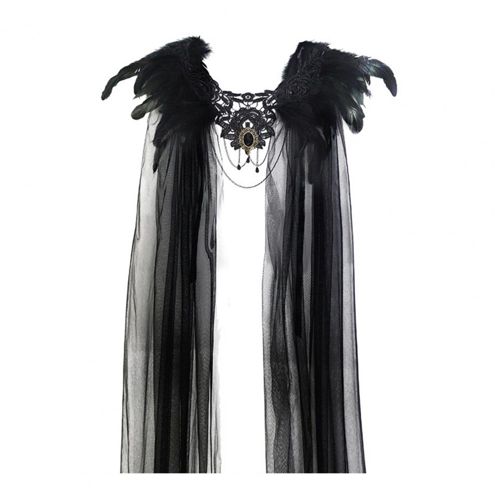 Design Black Yarn Black Tulle Draped Veil Black Feathered Shoulder Wrap Cape with Lace Collar Tulle Veil for Women for Halloween