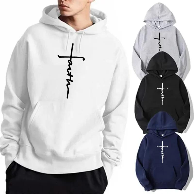 Unisex Cool Faith Print Hoodie Sweatshirt Men Women Fleece Hoodie Fashion Sports Hoodie Crew Neck Hoodie Sweatshirt