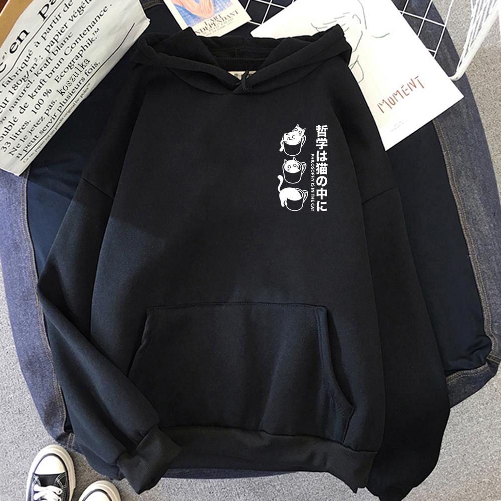 Japanese Cat Coffee Lover Hoodie Kawaii Women/men Hoodies Autumn Winter Clothes for Days Gifts Aesthetic Sweatshirt Vintage