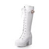 Hot Sale Spring Autumn Lacing Knee High Boots Women Fashion White Square Heel Woman Leather Shoes Winter PU Large Size 43