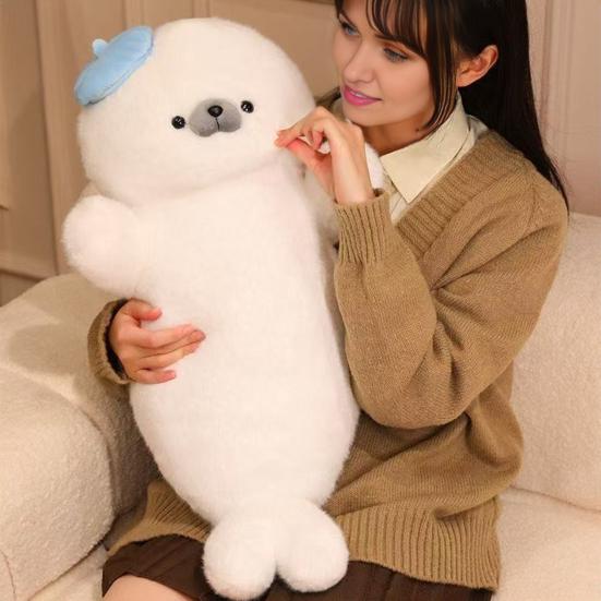 Available in various charming styles featuring unique expressions like beady, squinting, or frightened eyes, each design adds a distinct cuteness that appeals especially to girls. The milky white color and round body shape create an adorable photo prop with a built-in "soft cute filter," enhancing any picture's atmosphere effortlessly. Beyond its visual appeal, this seal doll acts as a soothing emotional partner with its soft figure and innocent expression, providing a comforting presence whether you're relaxing at home or cuddling before sleep. Perfect for anyone seeking both style and healing companionship in one plush friend.