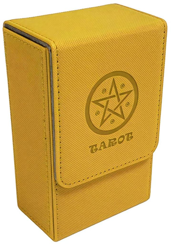 This luxurious synthetic leather tarot card deck case features a magnetic lid that opens and closes smoothly.