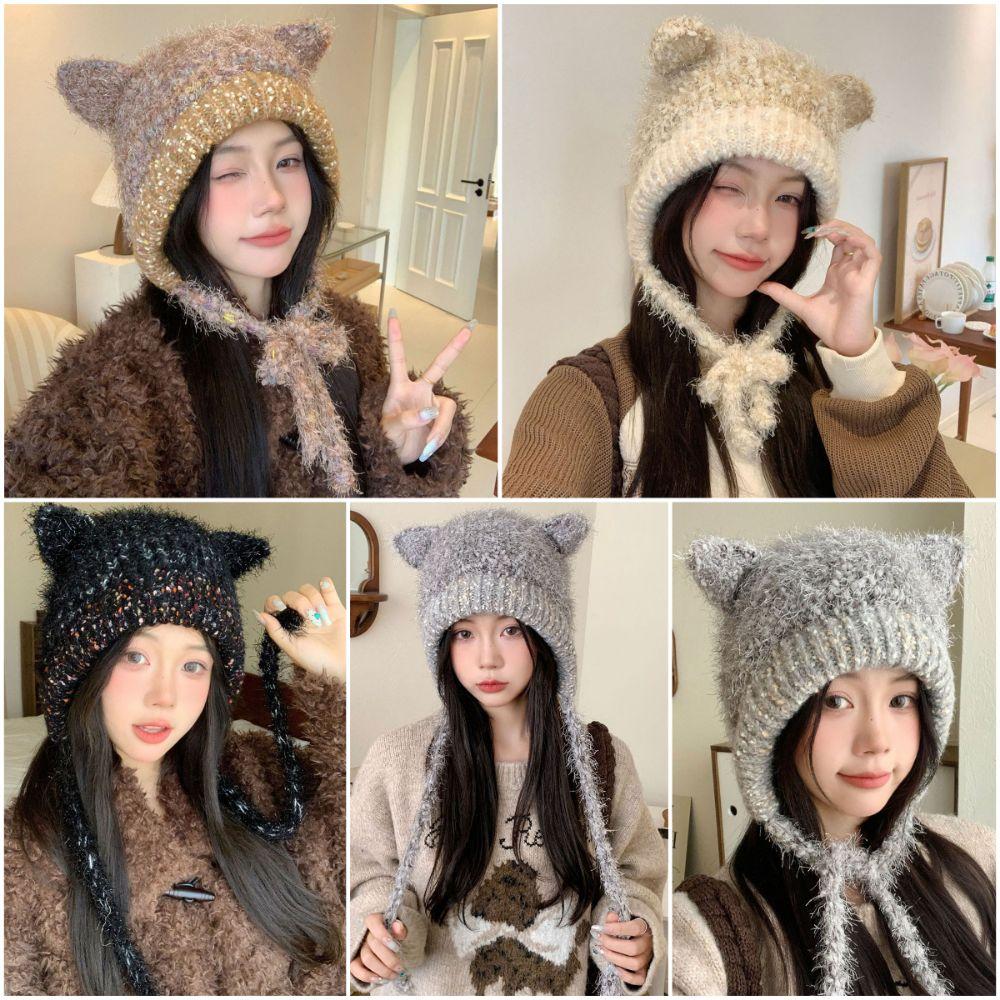 Multicolor Knitting Beanie Windproof Knitted Hat High Quality Long Loose Hat Headdress Woman