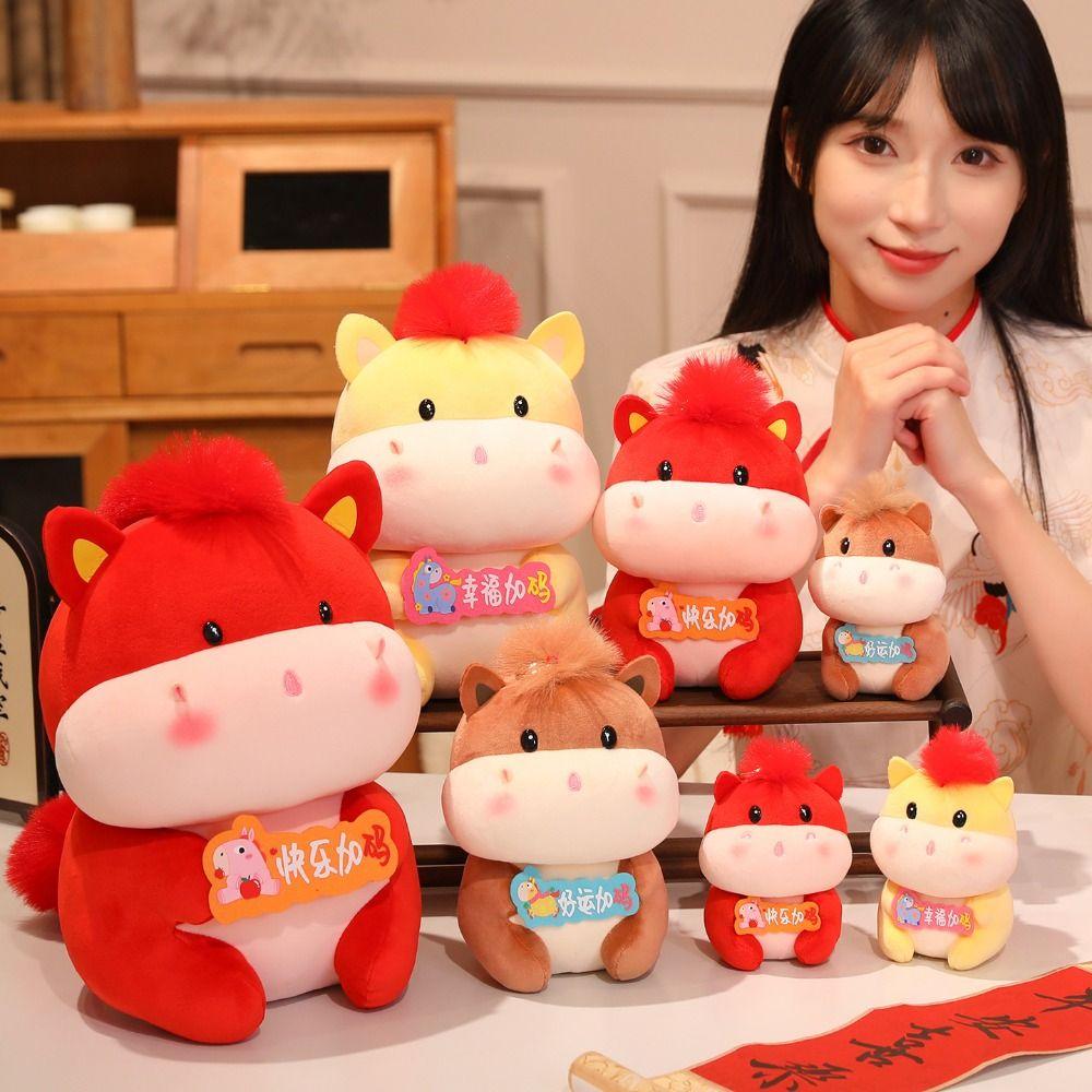Red Horse Stuffed Toy Cute Lucky Pony Toy Funny Pony Plush Doll Spring Festival