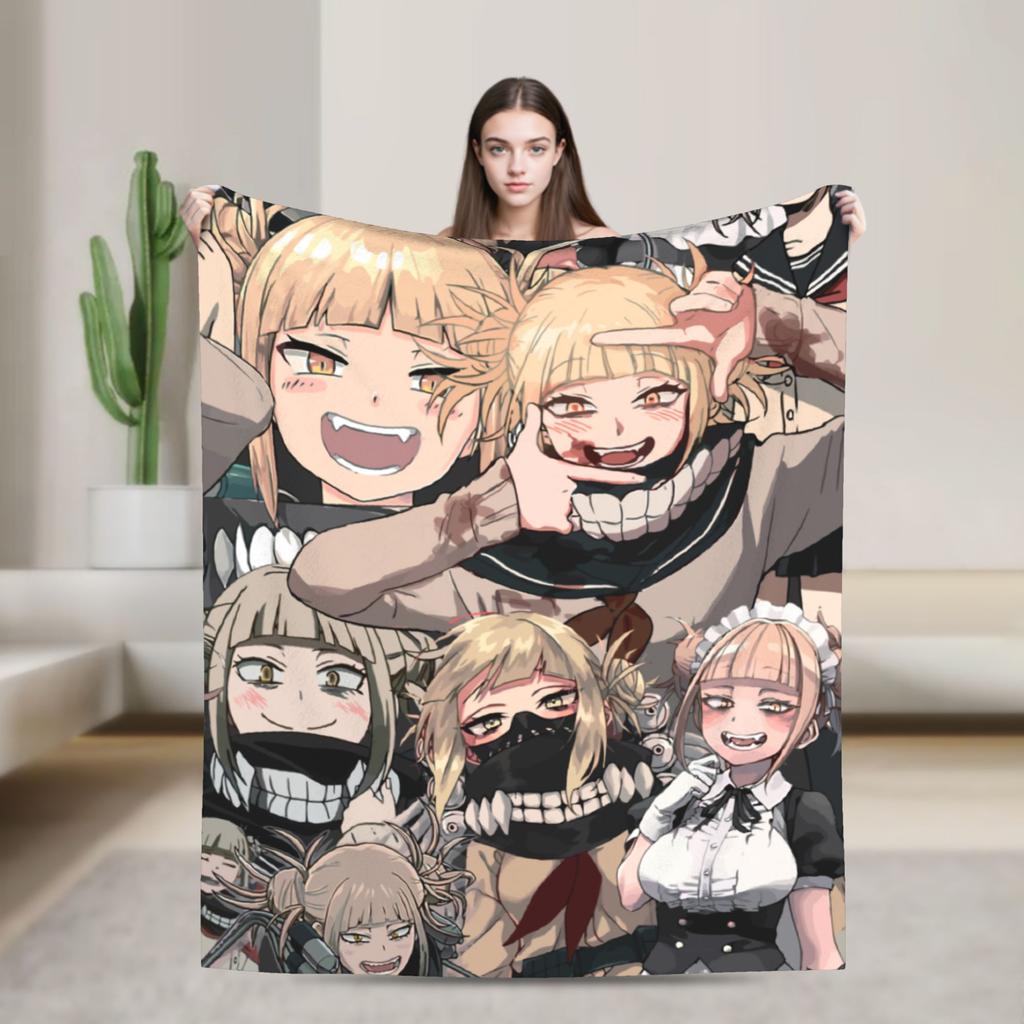 Himiko Toga Tribute Pattern Flannel Throw Blankets Boku No My Hero Academia Manga Blankets for Bedding Office Warm Quilt,