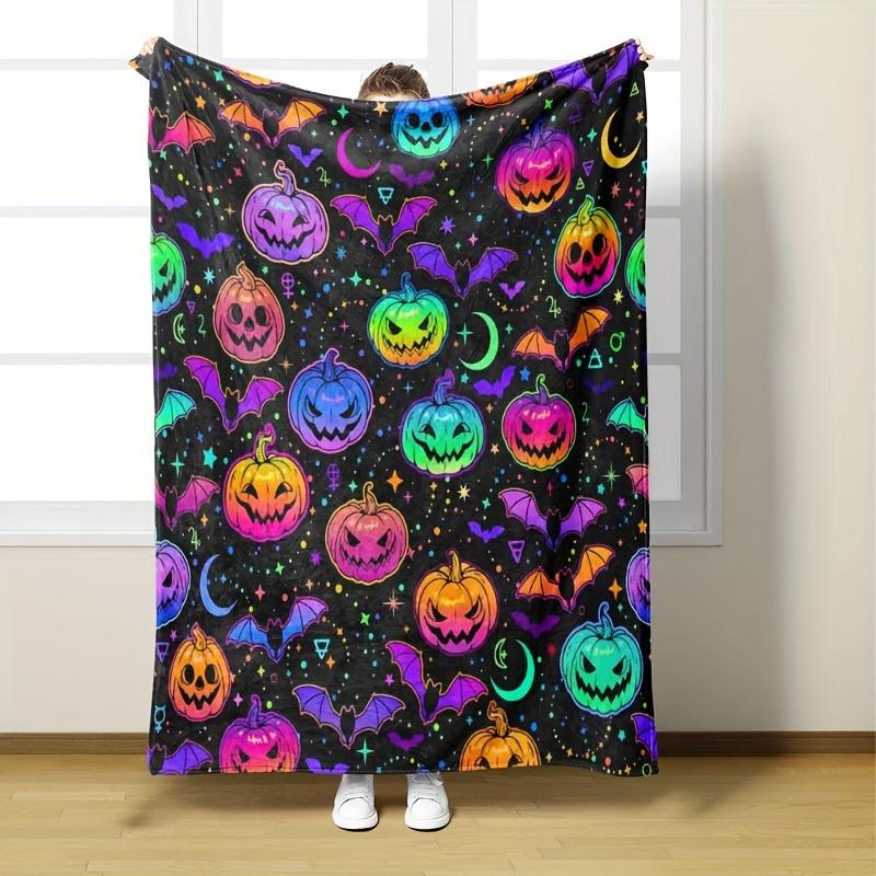 3D Printed Flannel Blanket Halloween Pumpkin Soft All-Season Comfort Office Breaks Blanket | Playful Print Halloween Decorations