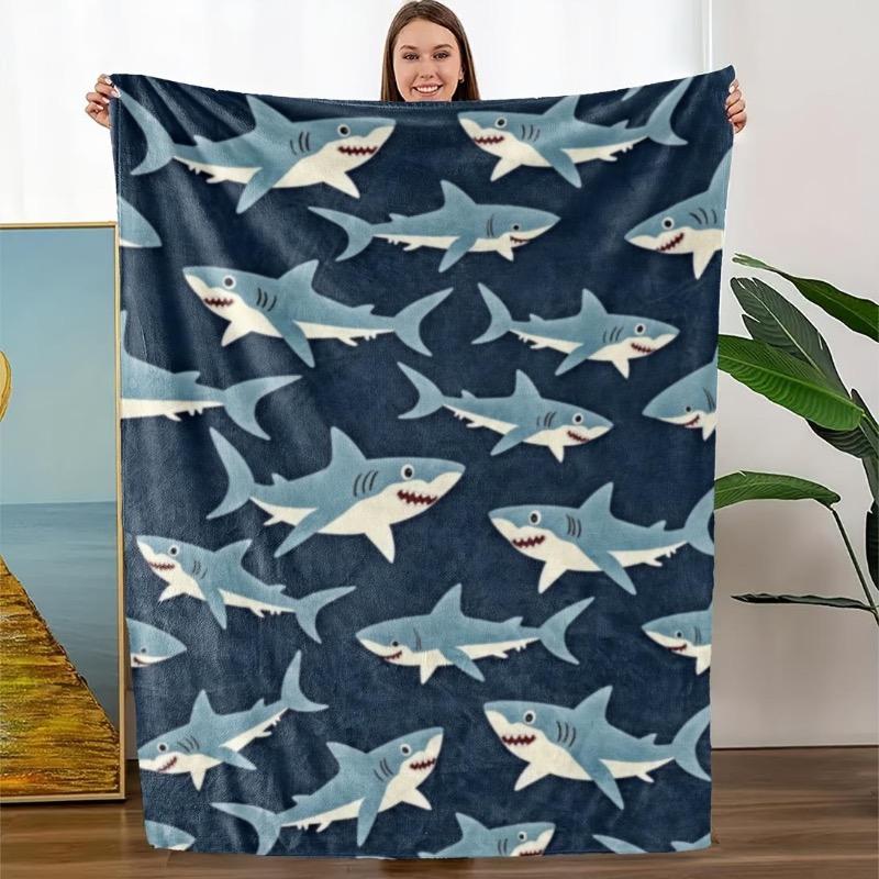 Comfortable Shark Themed Flannel Blanket - the Perfect Gift for Marine Life Enthusiasts Home Decor Fashion Blanket