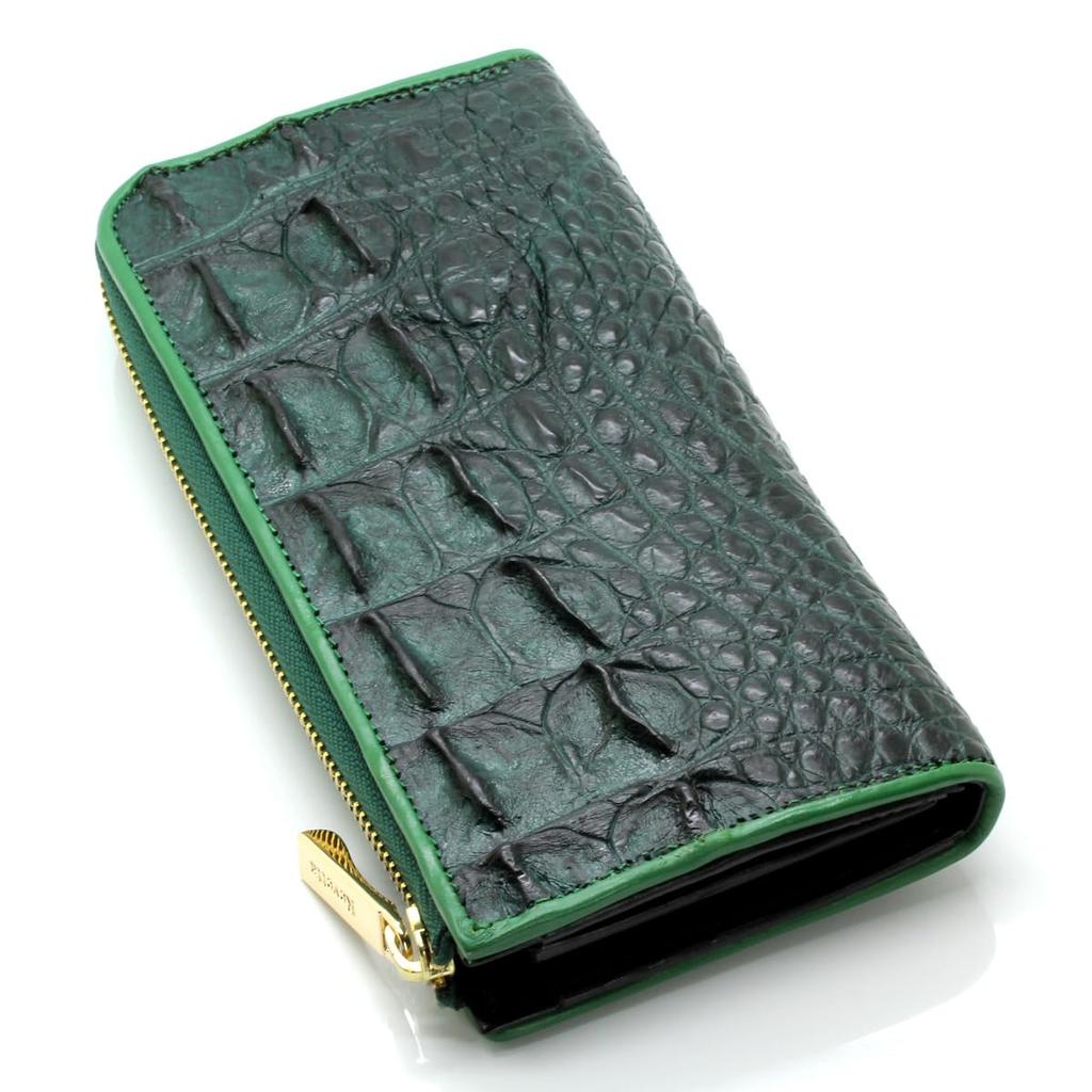 [Revetta] Crocodile Leather Long Wallet with Gold Python Interior, L-Shaped, Men's, Genuine Leather, Round Zipper, Green, Matte Finish [243crw]