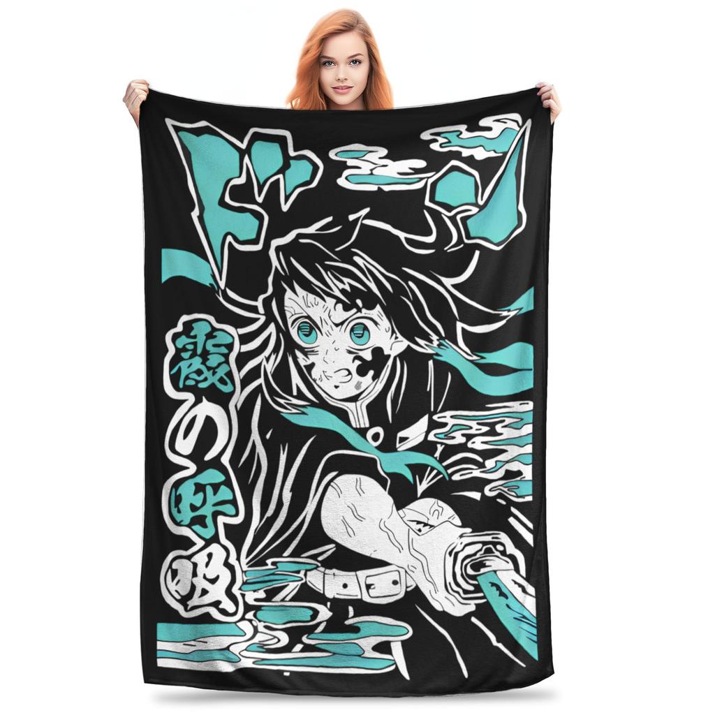 Muichiro Tokito Blankets Coral Fleece Plush Anime Demon Slayer Warm Throw Blankets for Airplane Travel Bedroom Quilt