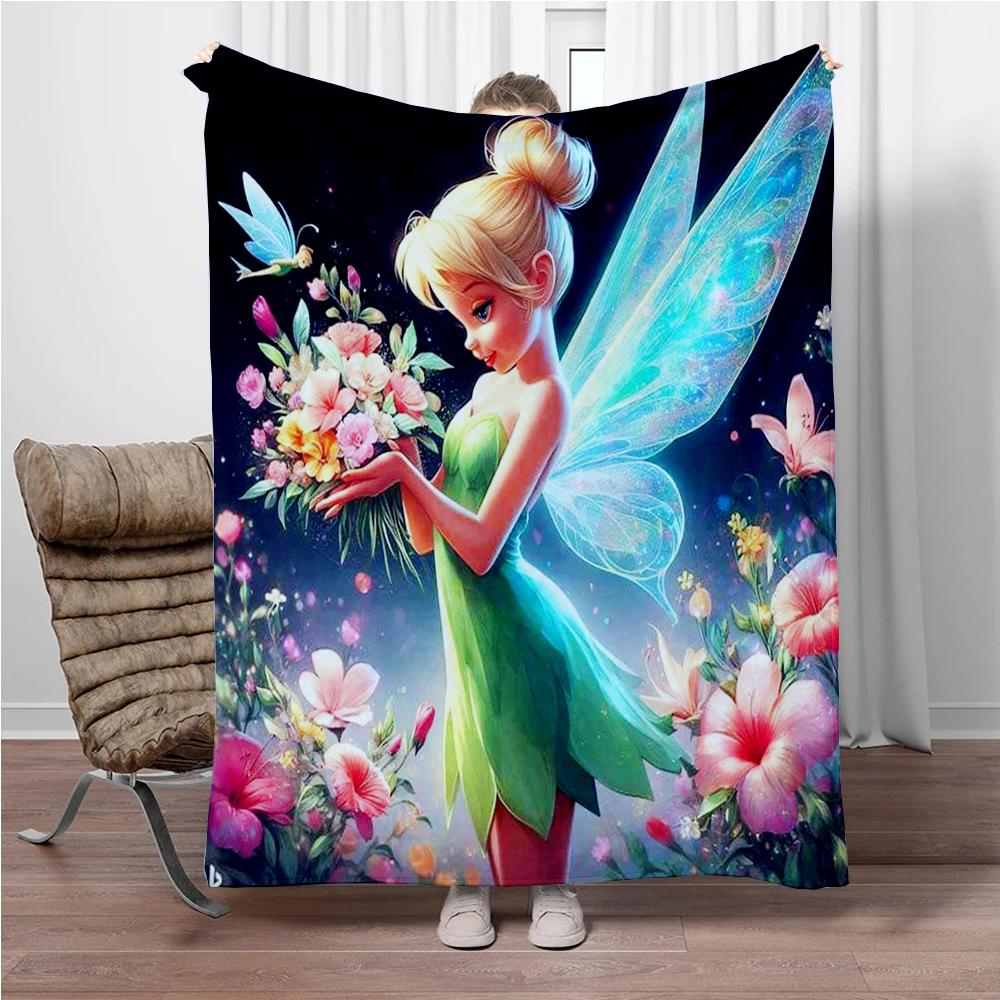 Disney Cartoon Tinker Bell Flannel Blanket Warm Soft Throw Thick Picnic Blankets for Bed Bedspread Sofa Decor Kids Boy Girl Gift