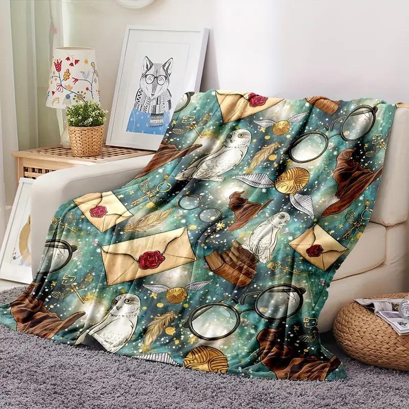 Wizard Hat Owl Printed Blanket for Sofa Bed Travel Camping Living Room Office Conditioning Blanket for All Seasons Gifts
