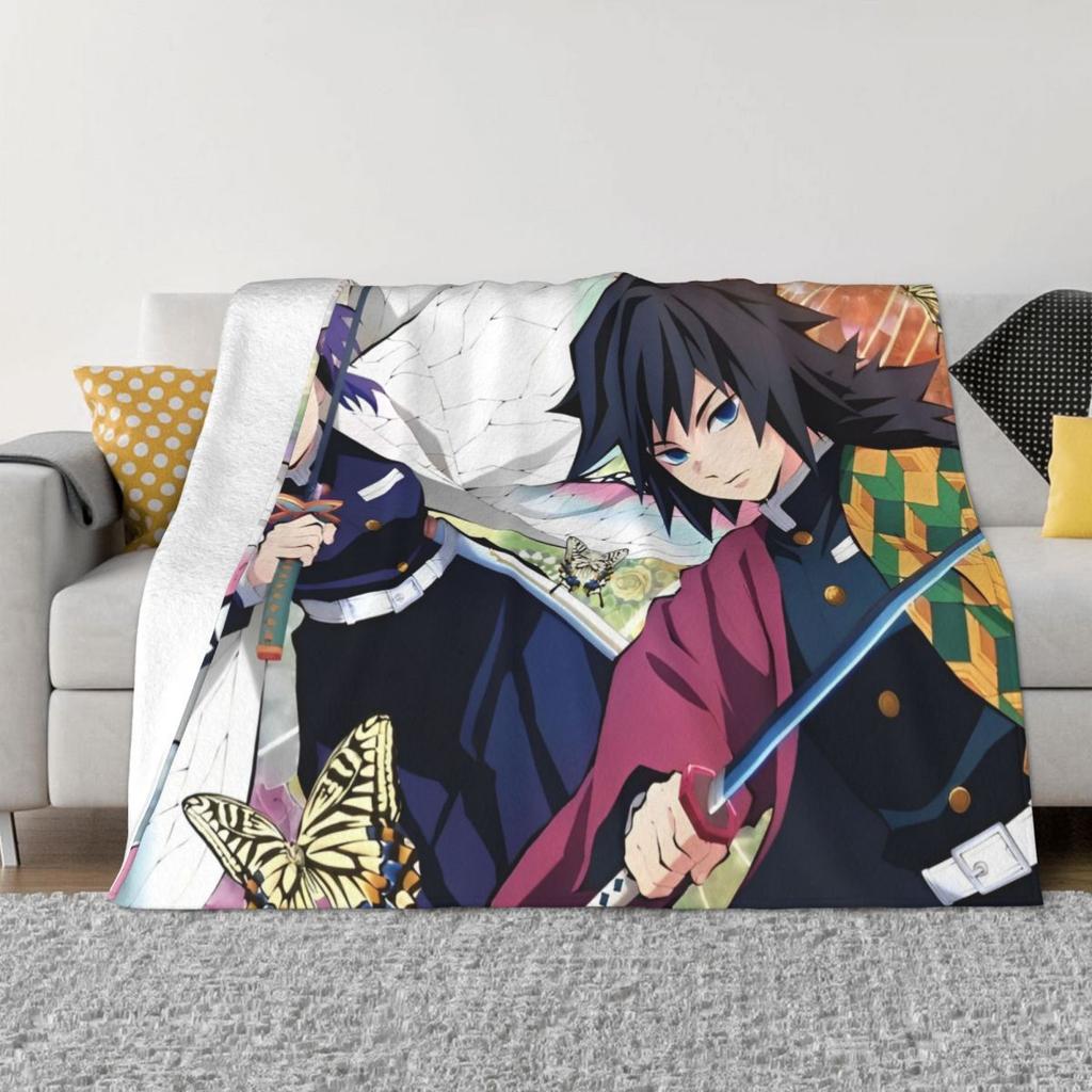 Demon Slayer Anime Plush Blanket Giyu Tomioka And Shinobu Kocho Vintage Throw Blankets for Home 125*100cm Rug Piece