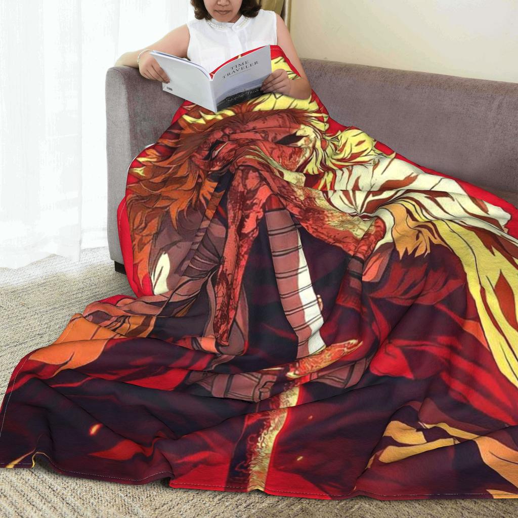 Demon Slayer Flame Hashira Kyojuro Rengoku Anime Blankets Flannel Throw Blanket for Couch Bedding Outdoor Throws Bedspread Quilt