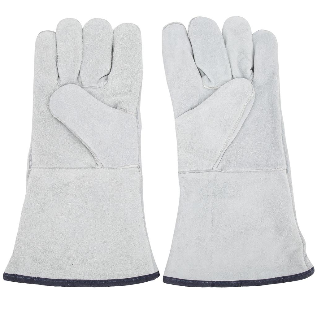 Pair Welding Glove Full Palm Wearproof Heat Resistant Hand Protector Cow Leather Gray for Carrying