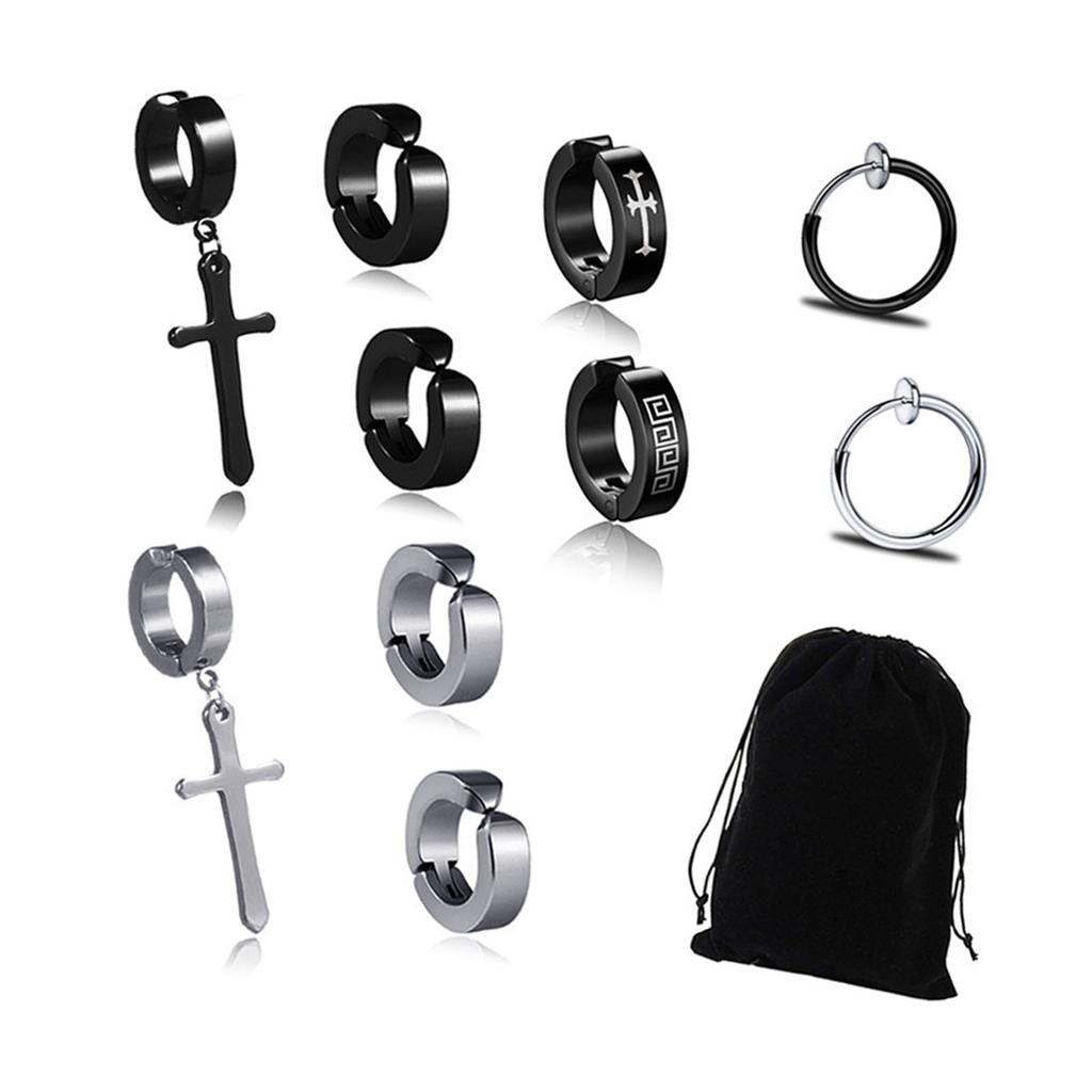 10 Pcs Cross Ear Clip Titanium Steel Men Rock Style Clip On Hoop Earrings Individually Packed Lightweight Fashionable