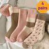 High Quality4 Pairs Women'S Thick Warm Mid-Calf Socks - Soft, Comfortable Striped Design In Pink, Beige, Brown & White, Perfect for Fall/Winter,