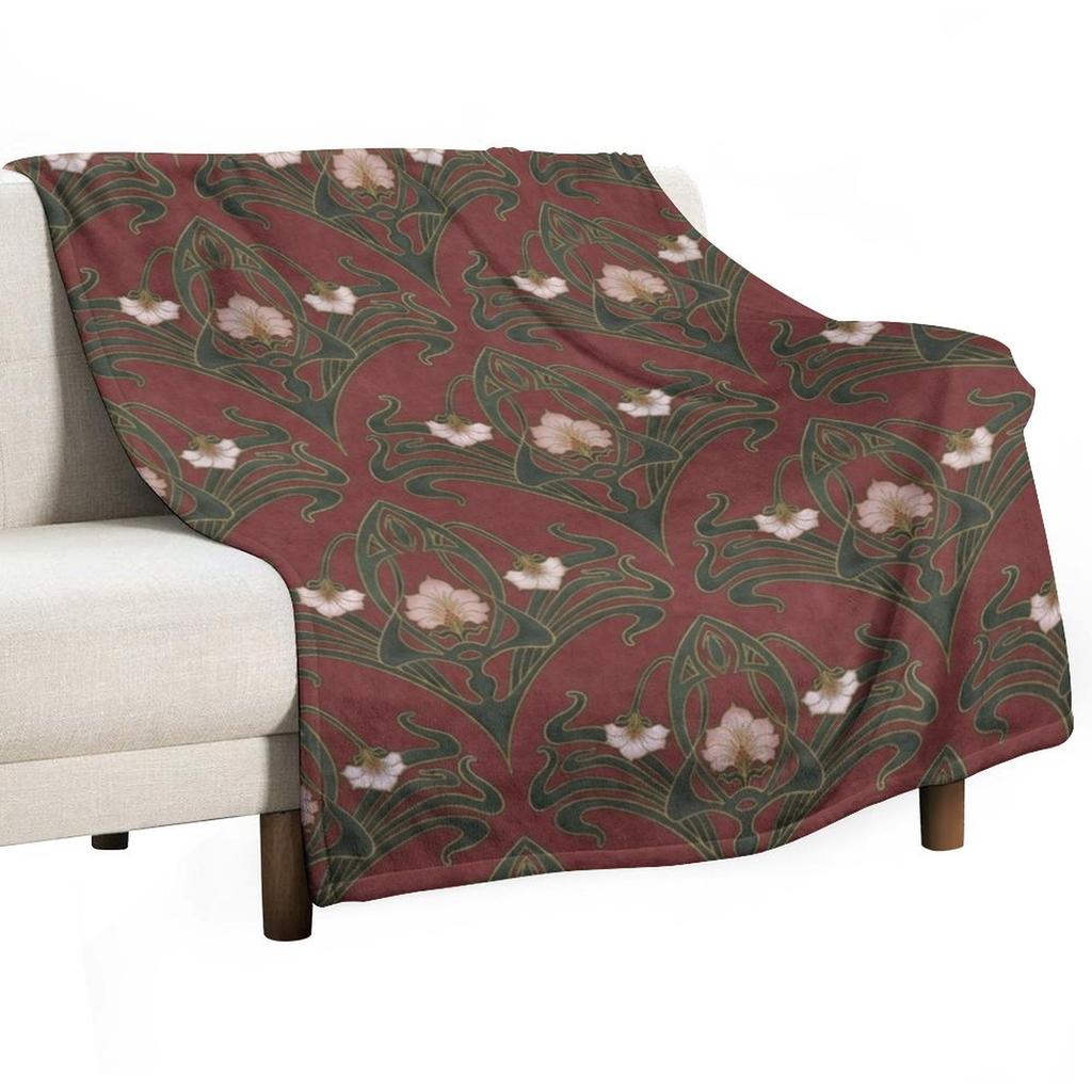 Red Art Nouveau Wallpaper Throw Blanket Decorative Beds Cosplay Anime for Sofa Extra Large Throw Blankets