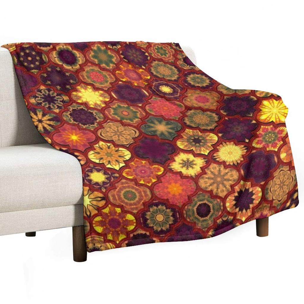 Moroccan Tile Pattern, Golden Red Throw Blanket for Winter Plaid On the Sofa Warm Luxury Designer Blankets