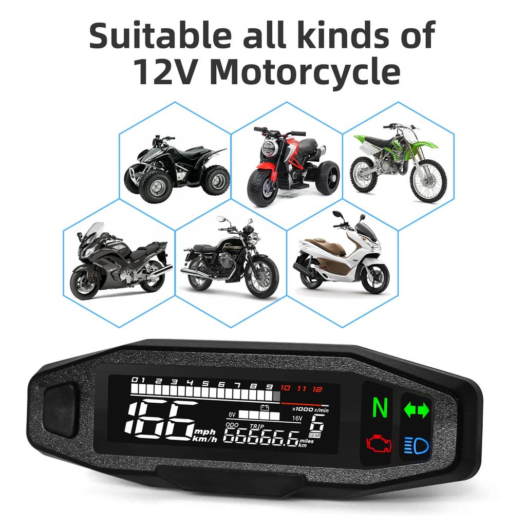 A Universal Digital Motorcycle Meter Speedometer LCD Digital Odometer RPM Fuel Level Meter Turn Signal Light for Motorcycle