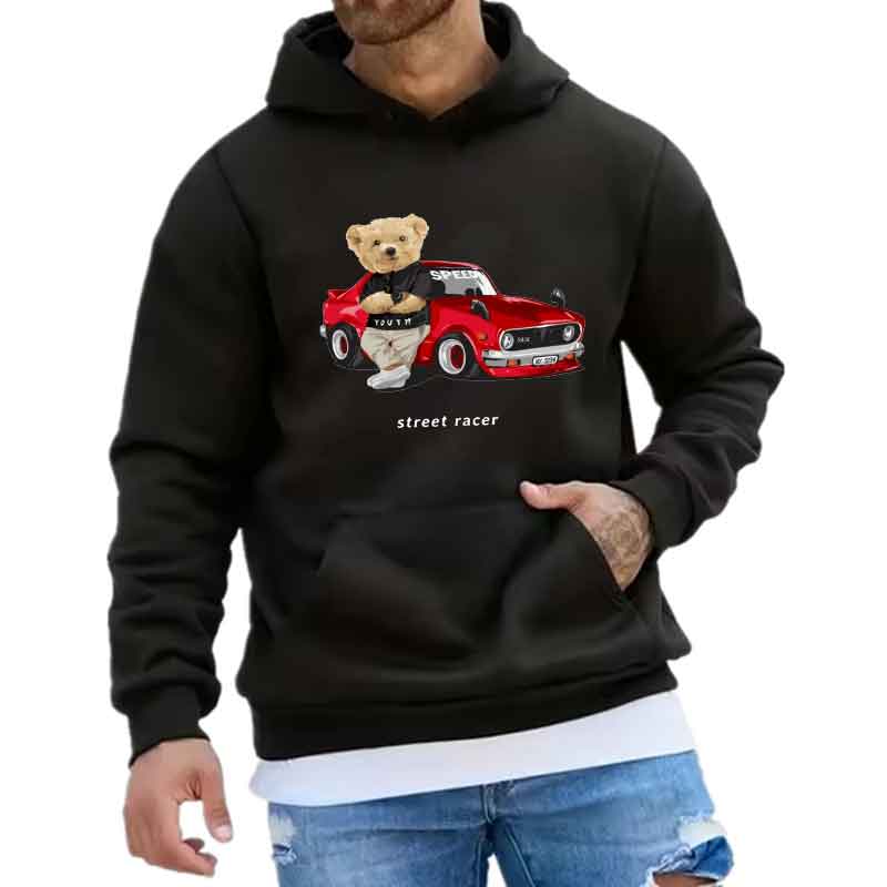Spring Autumn Fashion Casual Hooded Sweatshirt Men Women Street Simple Hoodie Little Bear Drive A Car Printing Unisex Top