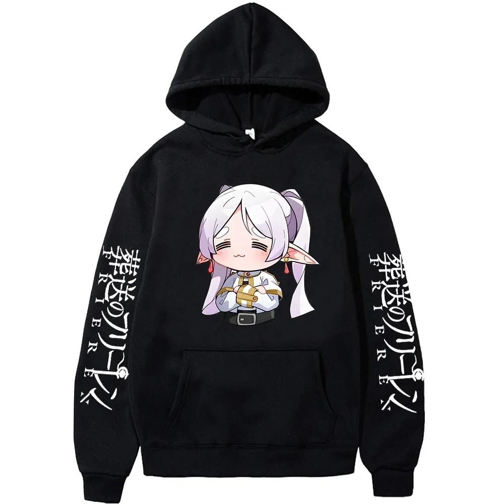Cartoon Cute Frieren Hoodies Beyond Journey's End Manga Print Hooded Sweatshirts Autumn Winter Fleece Soft Plus Size Streetwear