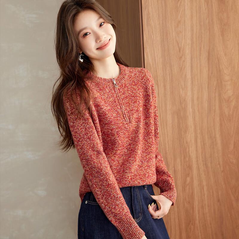 Srcr Women's Premium 100% Wool Half-Zip Knit Sweater