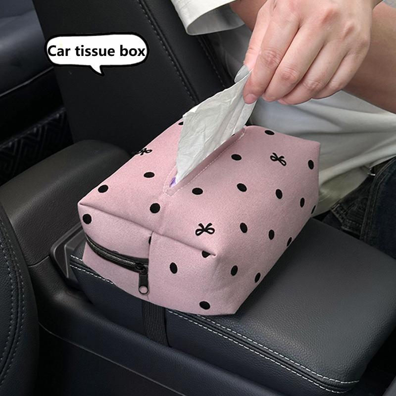 NEW Car Tissue Box Fashionable Polka Dot Bow Tie Hanging Tissue Box Creative Multi-functional In-car Tissue Paper Bag
