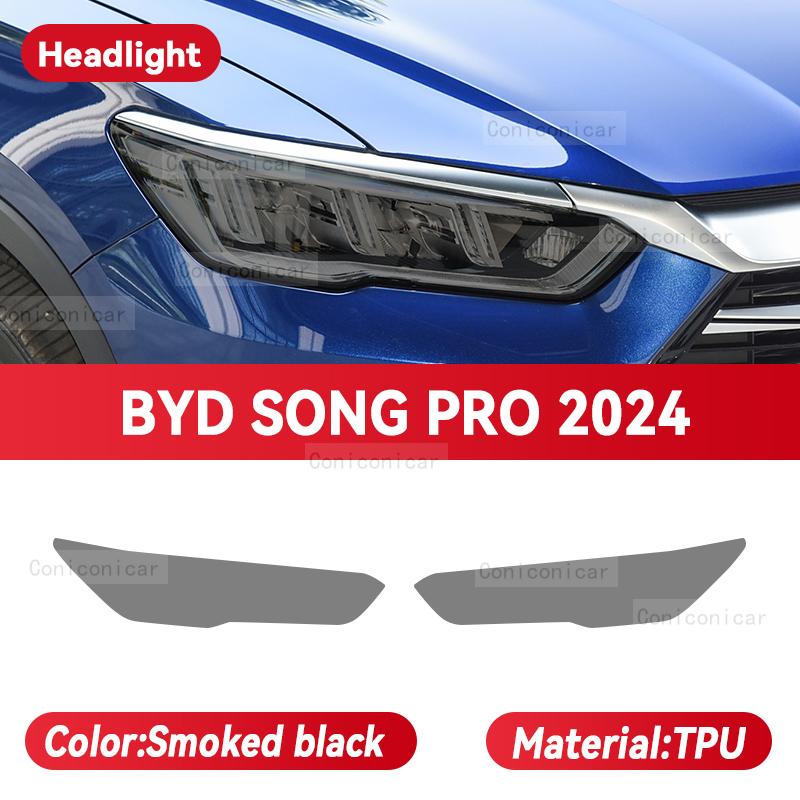 For BYD SONG PRO 2024 Car Headlight Smoked Black TPU Protective Film Front Light Tint Change Color Cover Sticker Accessories