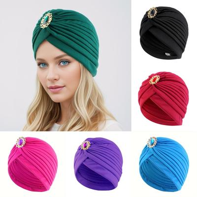 Headscarf Hat with Fancy Pleats Rhinestones Retro Style Women Turban