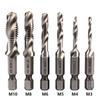 1-6PCS Tap Drill Titanium Plated Hex Shank HSS Screw Thread Metric Tap Bits Screw Machine Compound M3 M4 M5 M6 M8 M10 Hand Tools