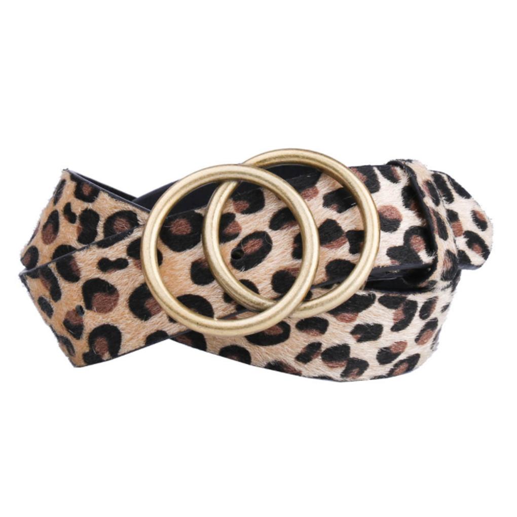 Waist Band Leopard Print with Double Ring Buckle Wide Faux Leather Straps Valentines Day Fashion Accessory Belts for Women