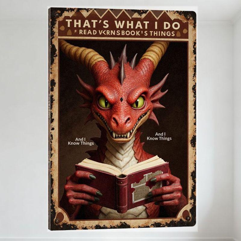 Vintage Red Dragon Reading Book Metal Tin Sign, 'That's What I Do # READ VRNSBOOK'S THINGS' Rustic Aged Wall Decor for Home Cafe