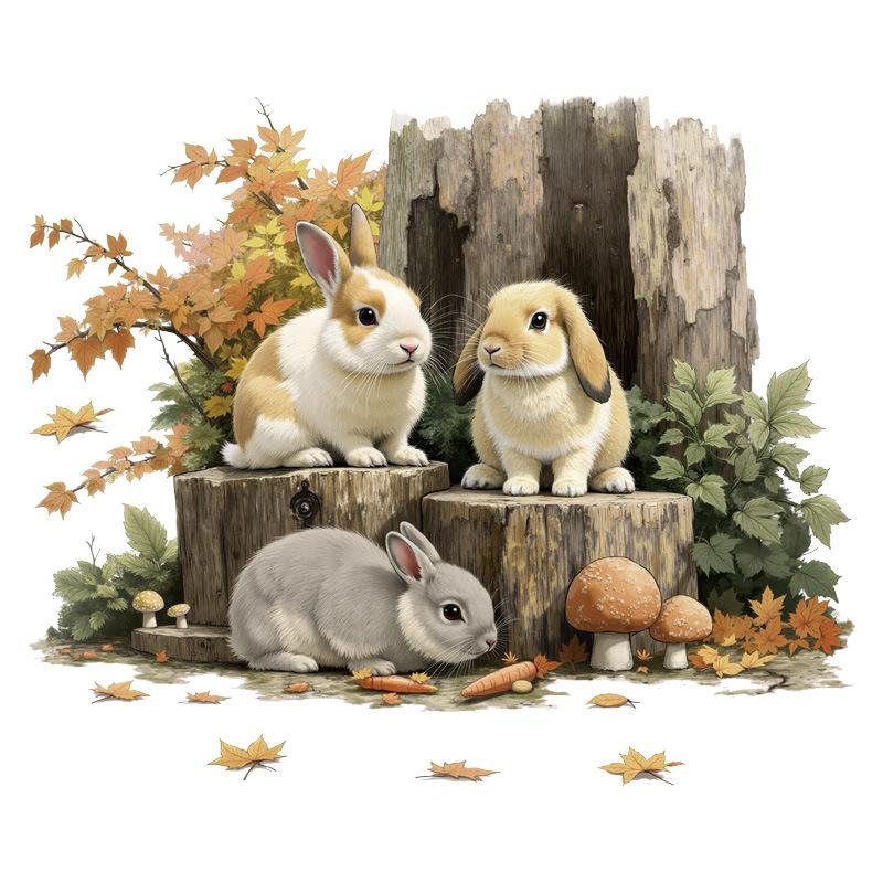 Removable Forest Stump Bunny Wall Stickers for Kids Room Cartoon Animal Nursery Decor Wall Art Easter