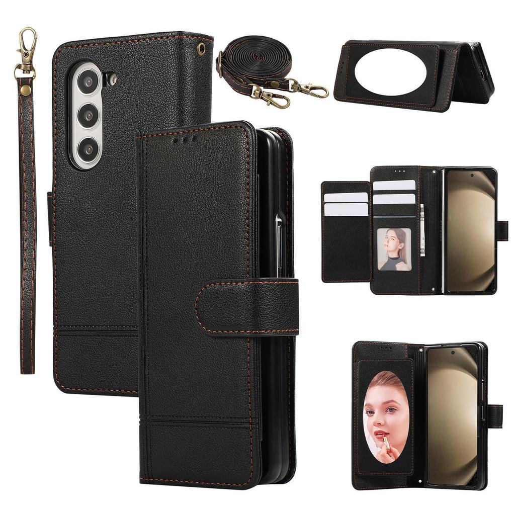 Samsung Z Fold 6/7 Mirror Flip Crossbody Leather Phone Case with Card Holder